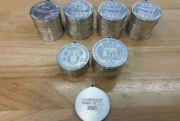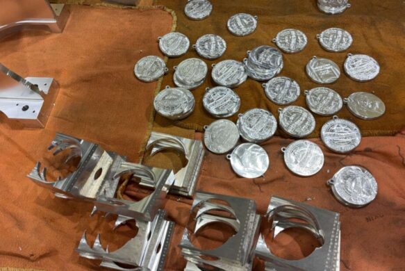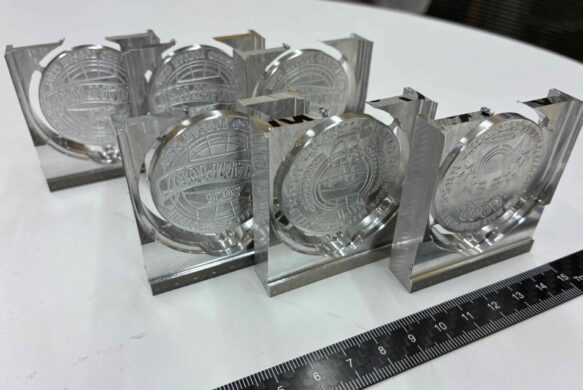 5軸加工機を使い素材からメダルを一個一個削り出してまいります!(^^)